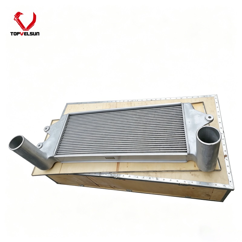 Troubleshooting: Continuous vibration from rock-breaking or heavy digging often cracks the aluminum welds on the charge air cooler. This allows the highly pressurized boost air (0.25–0.35 MPa) to escape before reaching the engine. Listen for a loud "hissing" sound under the hood when the engine is revved. If a soapy water test reveals bubbles on the welds, the internal pressure is lost, and the 11NB-42070 assembly must be replaced.